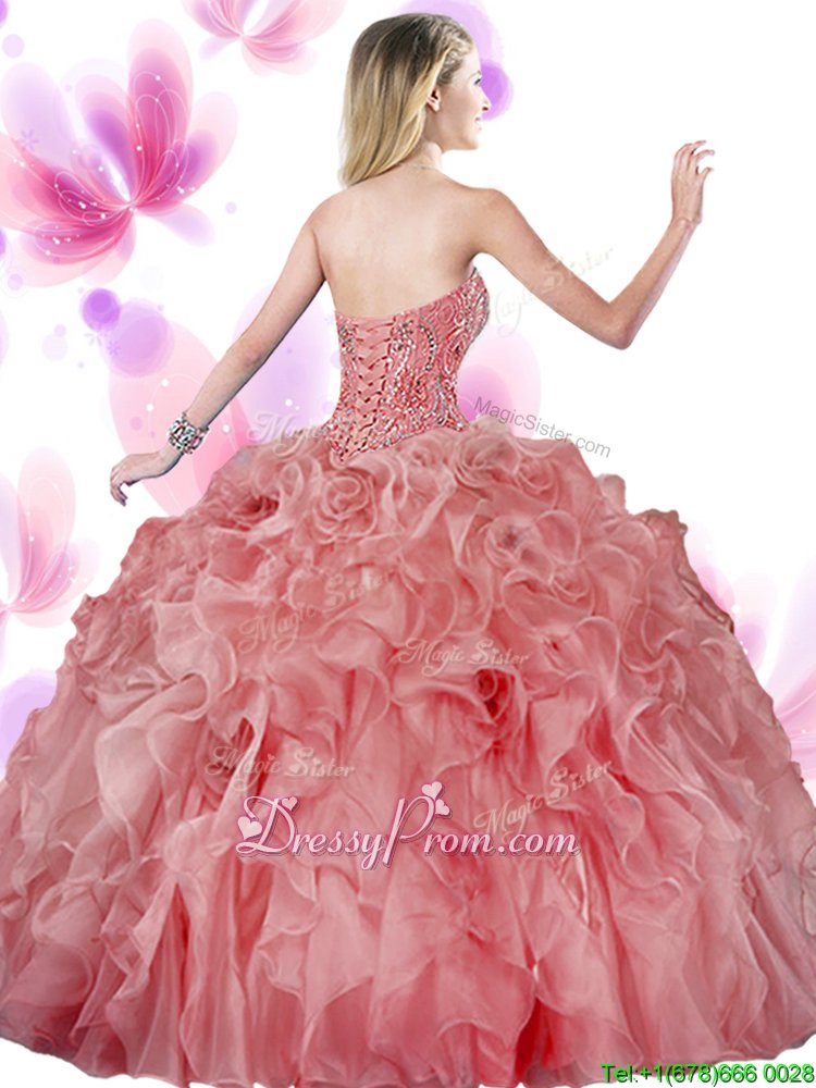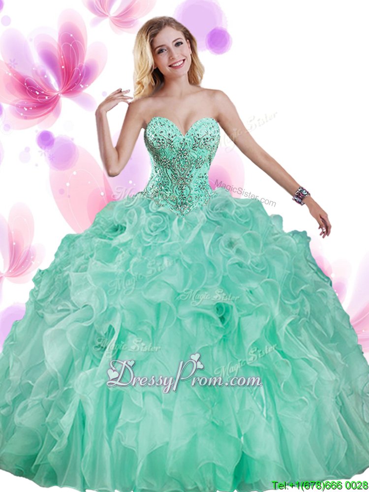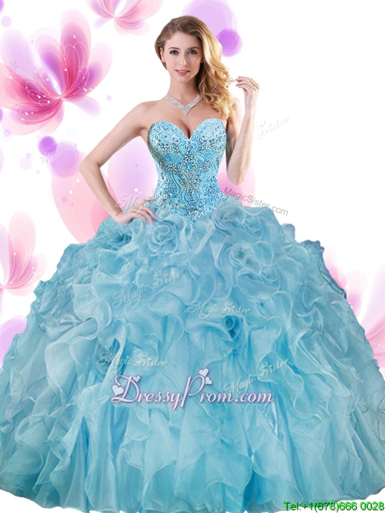 Custom Fit Turquoise Sleeveless Organza Lace Up 15 Quinceanera Dress forMilitary Ball and Sweet 16 and Quinceanera