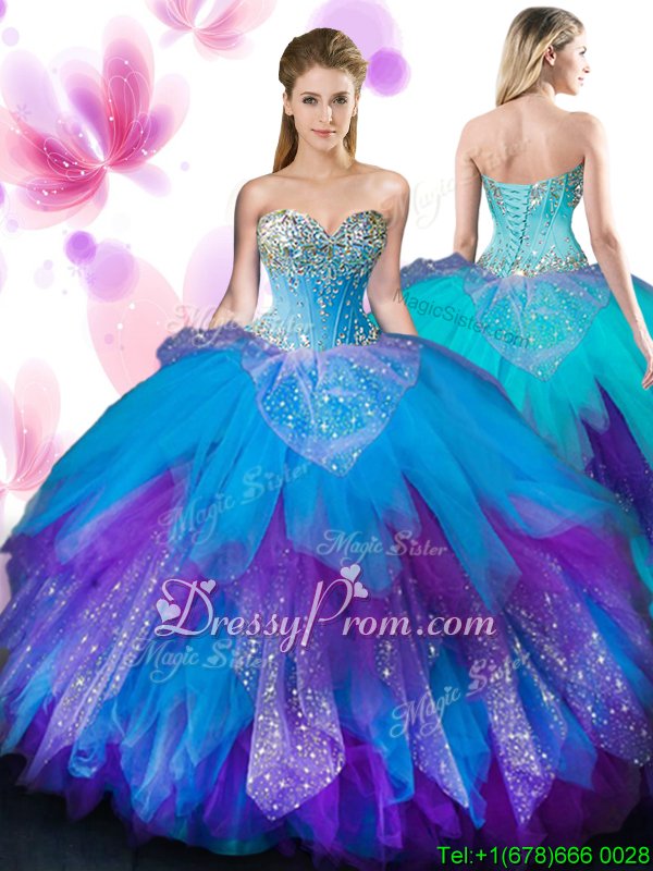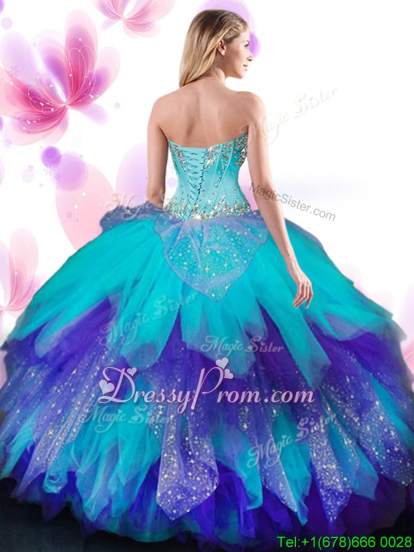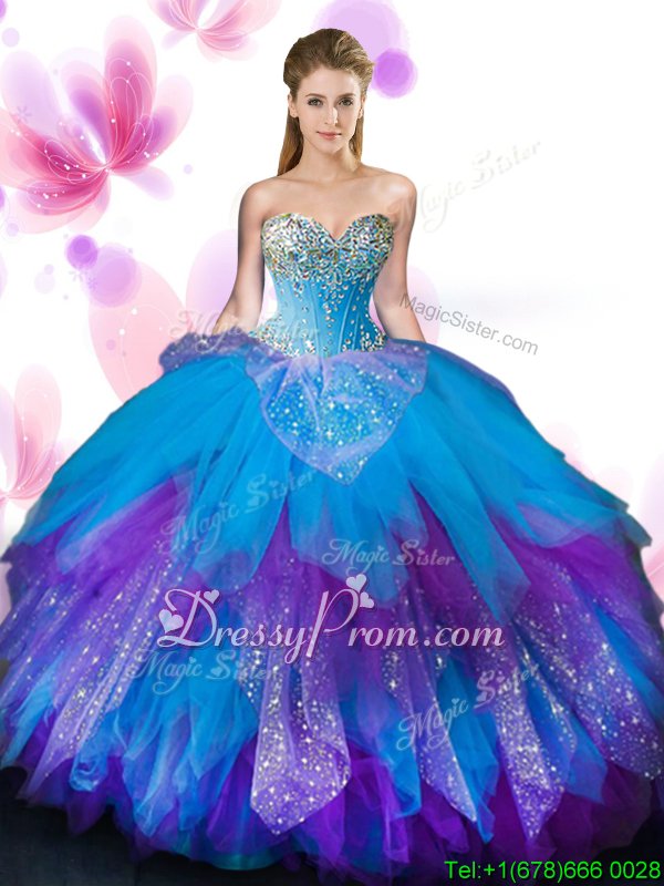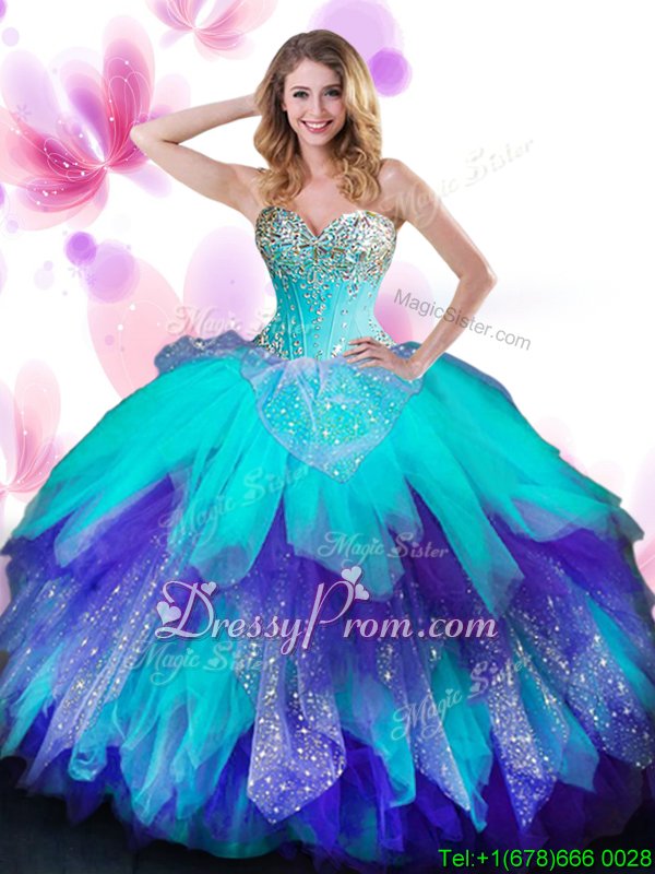Free and Easy Multi-color Sleeveless Beading and Ruffles Floor Length 15th Birthday Dress