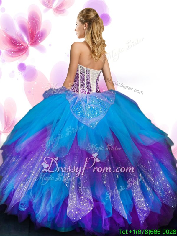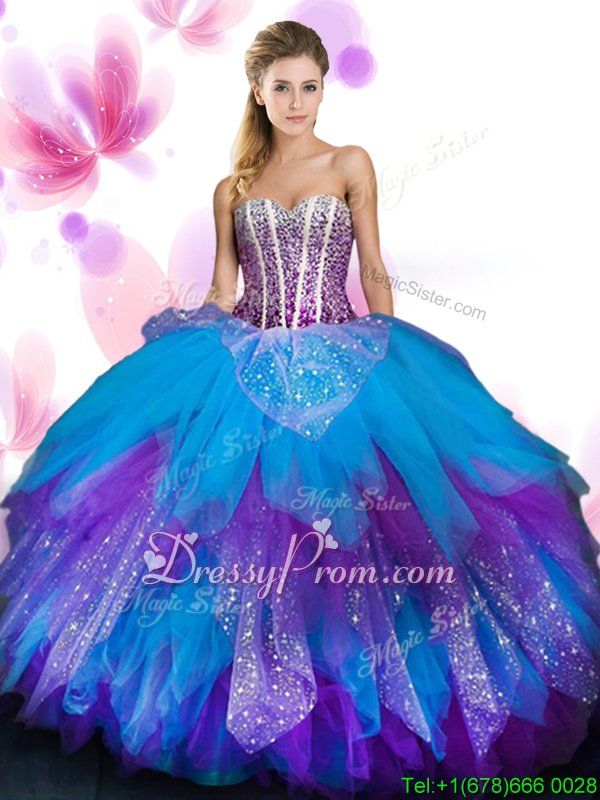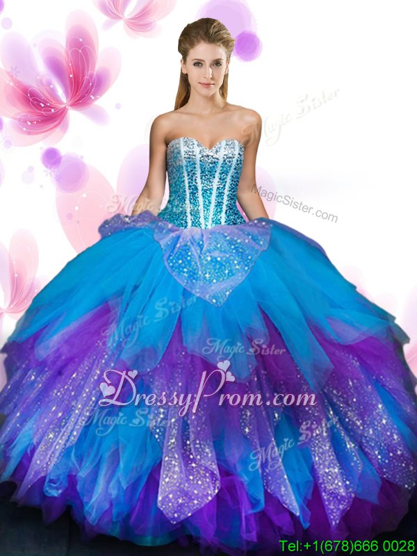 Elegant Multi-color Lace Up Sweetheart Beading and Ruffled Layers Quinceanera Dresses Tulle Sleeveless