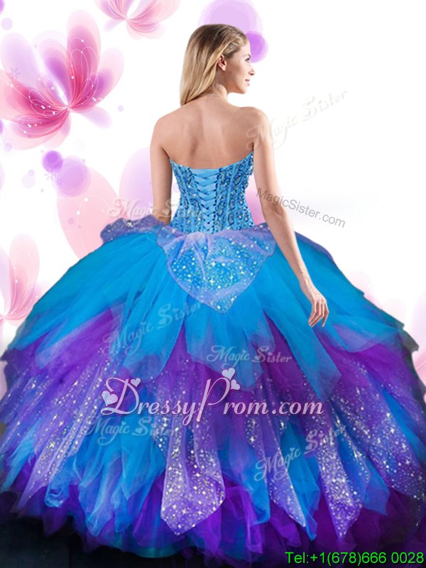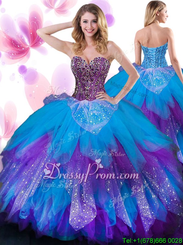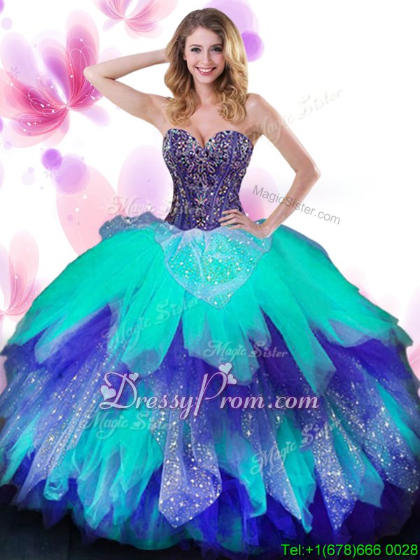 Glamorous Floor Length Multi-color Quinceanera Dresses Tulle Sleeveless Spring and Summer and Fall and Winter Beading and Ruffled Layers