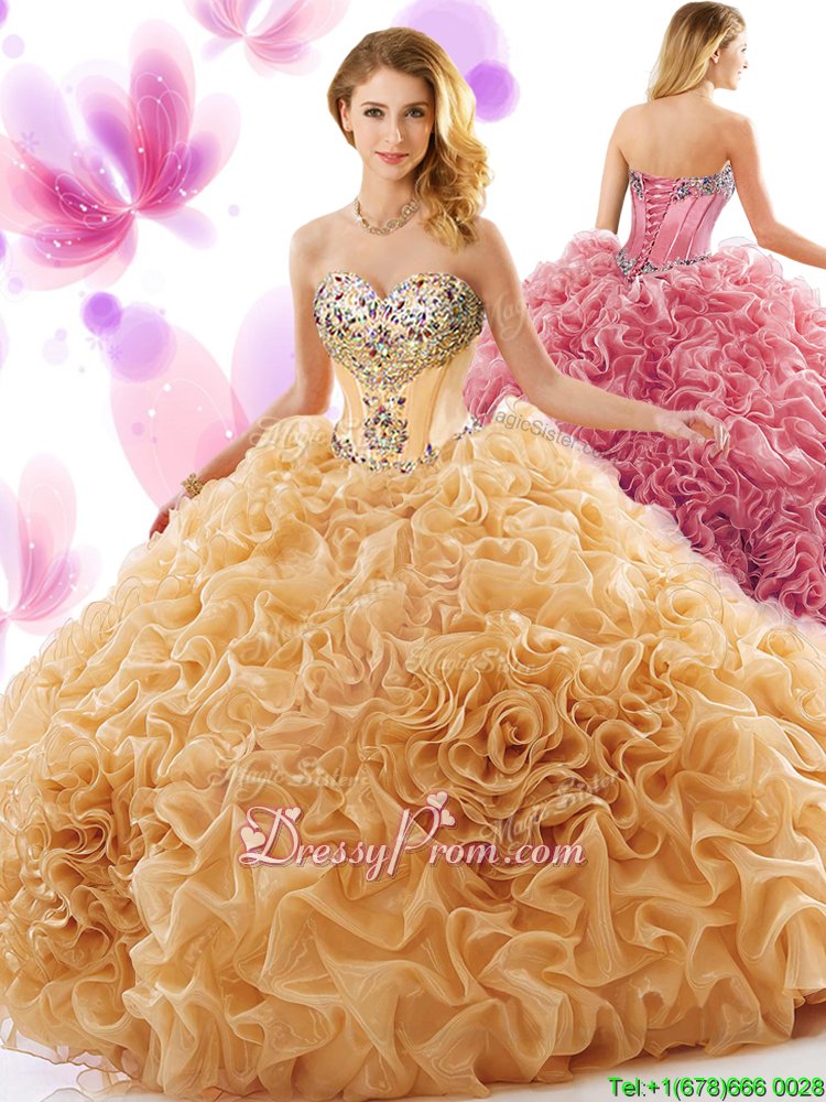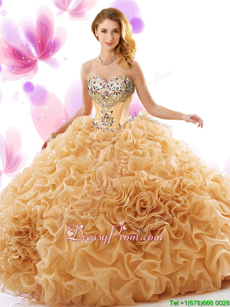 New Arrival Spring and Summer and Fall and Winter Organza Sleeveless Floor Length Quinceanera Dress andBeading and Ruffles