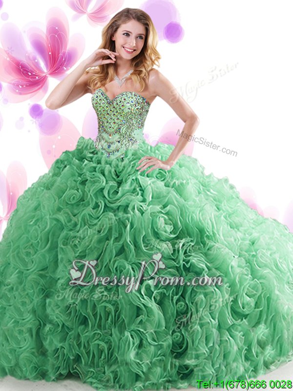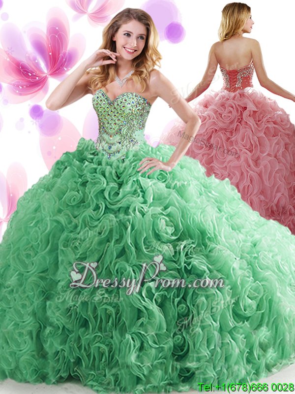 Neckline : SweetheartShown Color : GreenSilhouette : Ball GownsSleeve Length : sleevelessHemline : floor lengthBack Detail : Lace upFabric : OrganzaEmbellishment : Beading,RufflesOccasion : Military Ball,Sweet 16,QuinceaneraSeason : Spring,Summer,Fall,Winter