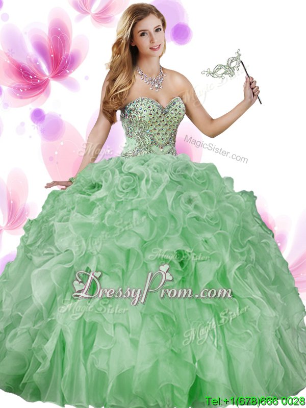 Stylish Green Organza Lace Up Quinceanera Dress Sleeveless Floor Length Beading and Ruffles