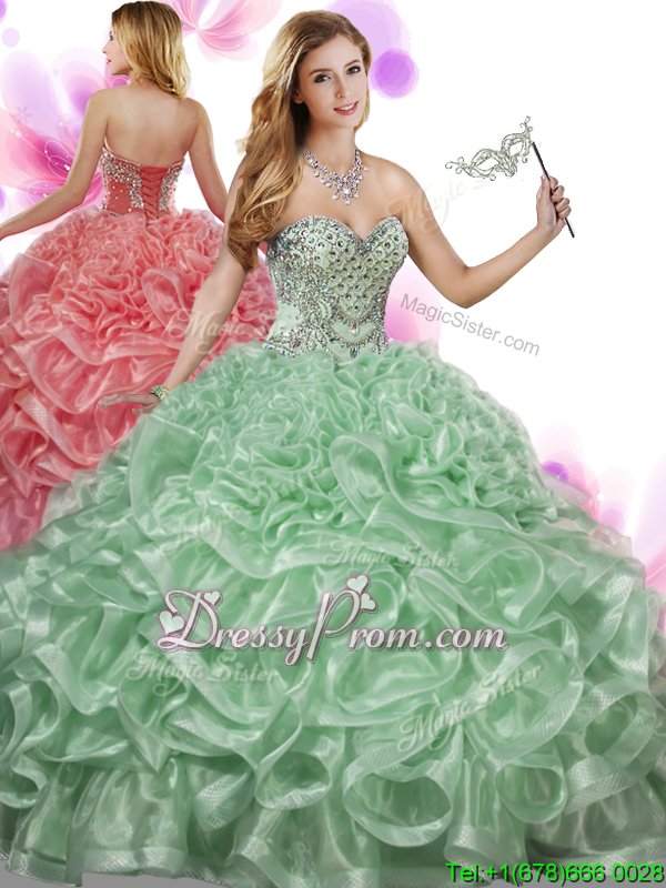 Ideal Ball Gowns Sweet 16 Dresses Green Sweetheart Organza Sleeveless Floor Length Lace Up