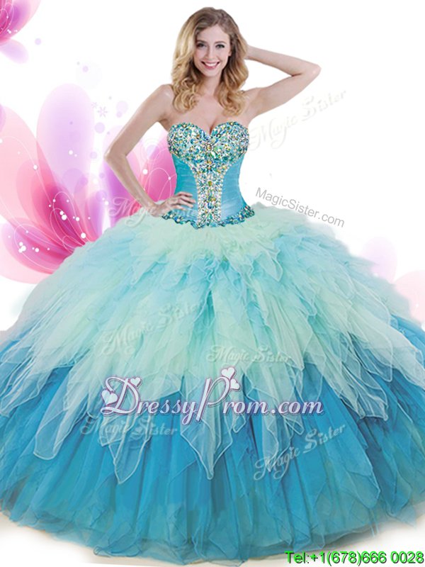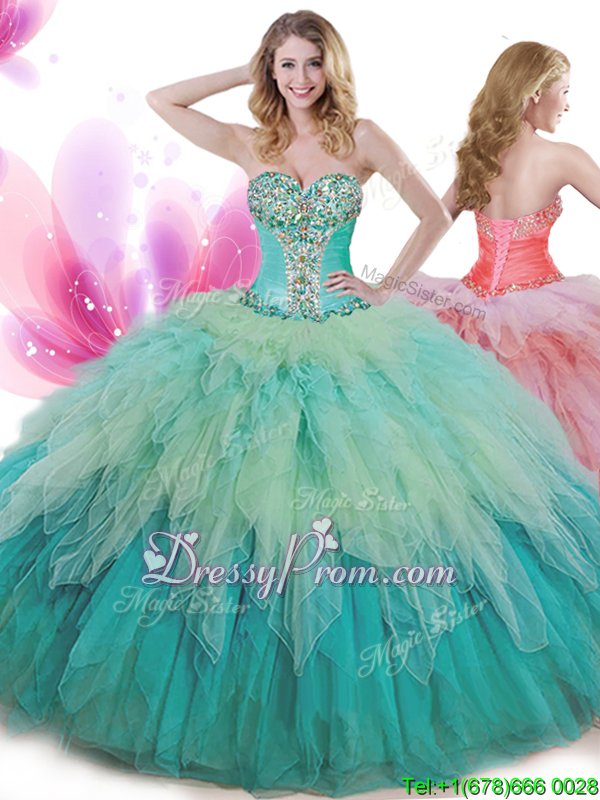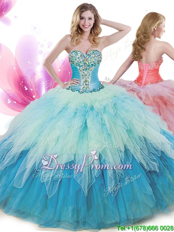 Excellent Sweetheart Sleeveless Tulle Vestidos de Quinceanera Beading and Ruffles Lace Up