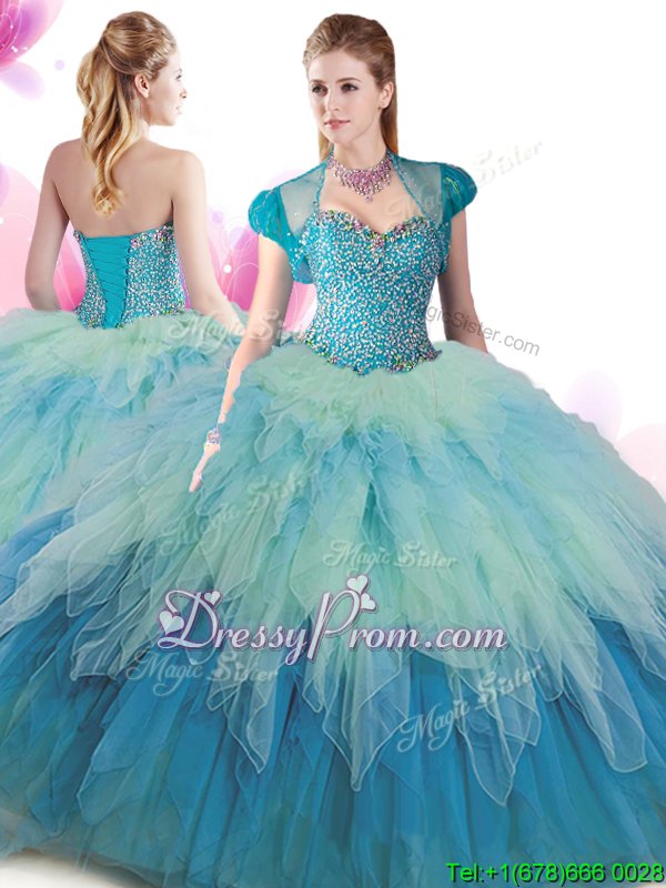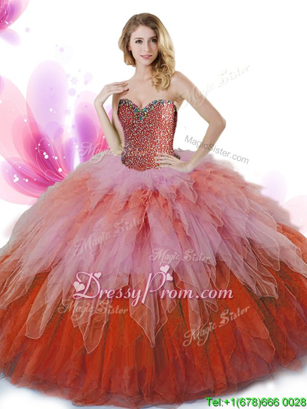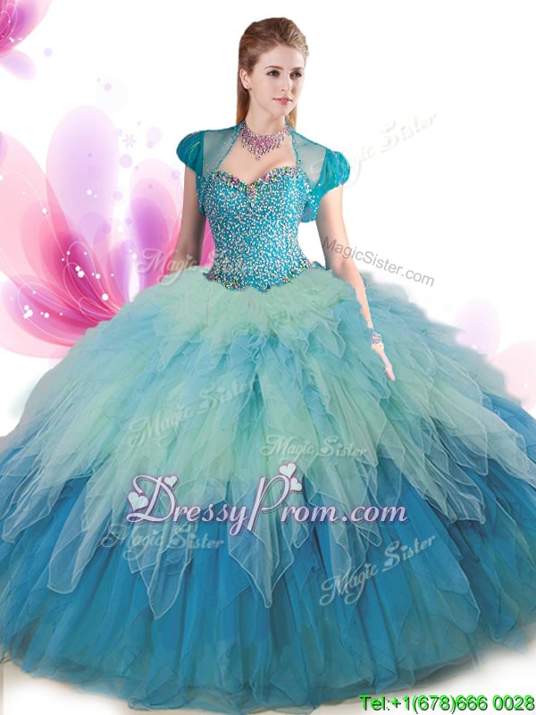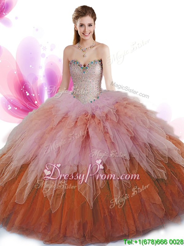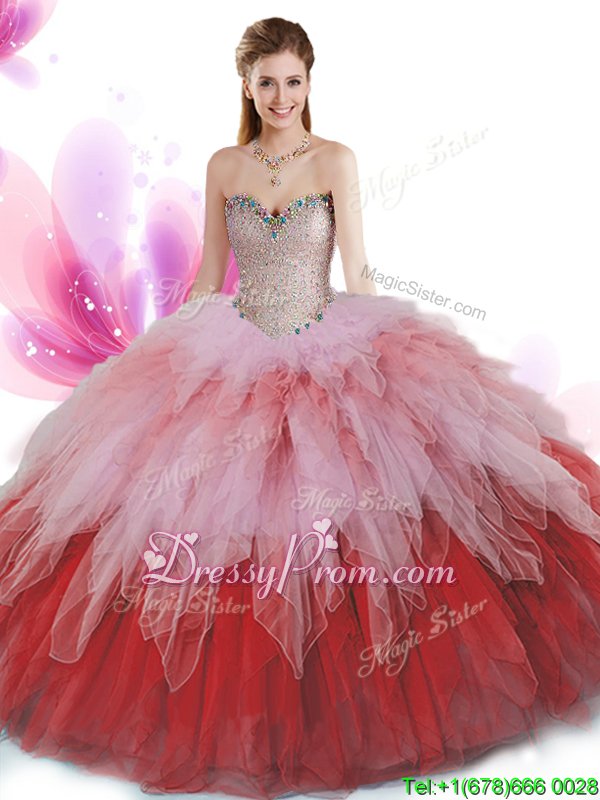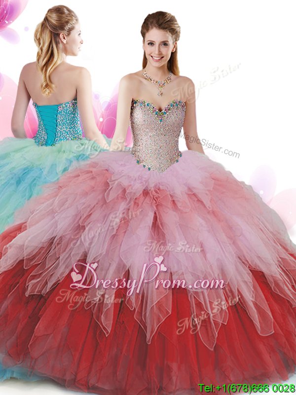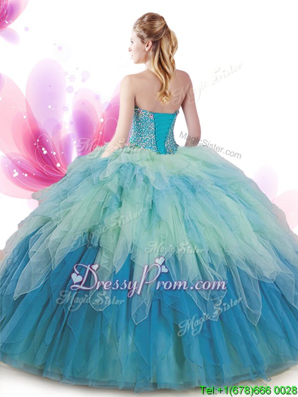 Flirting Multi-color Sleeveless Tulle Lace Up Ball Gown Prom Dress forMilitary Ball and Sweet 16 and Quinceanera