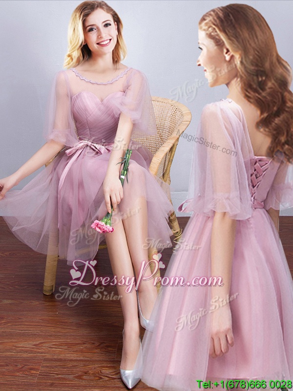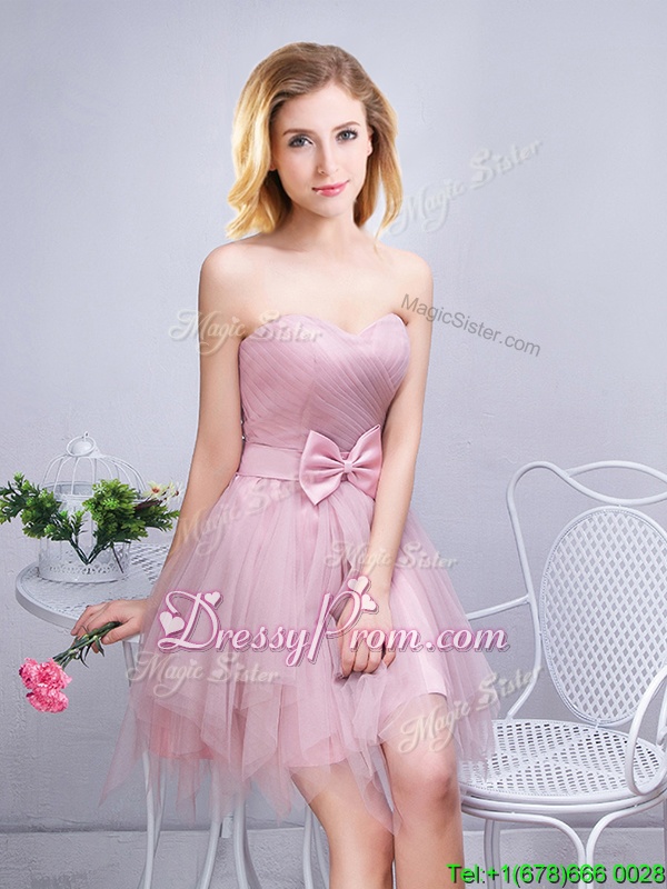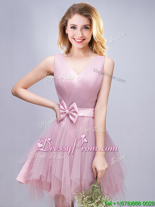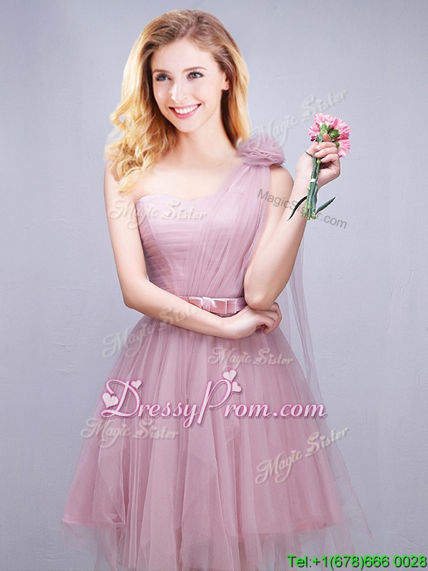 Neckline : ScoopShown Color : PinkSilhouette : A-lineSleeve Length : sleevelessHemline : mini lengthBack Detail : Lace upFabric : TulleEmbellishment : Ruffles,Ruching,Bowknot,Hand Made FlowerOccasion : Prom,Party,Wedding PartySeason : Spring,Summer,Fall
