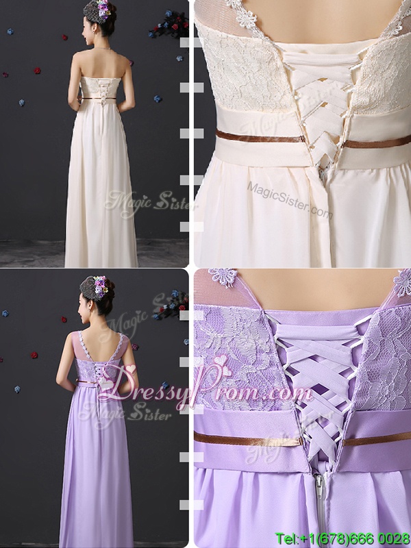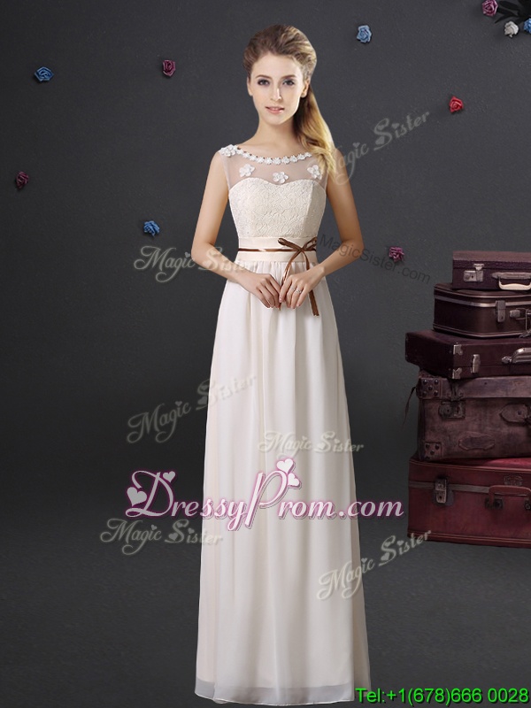Superior White Scoop Neckline Lace and Belt Vestidos de Damas Short Sleeves Lace Up