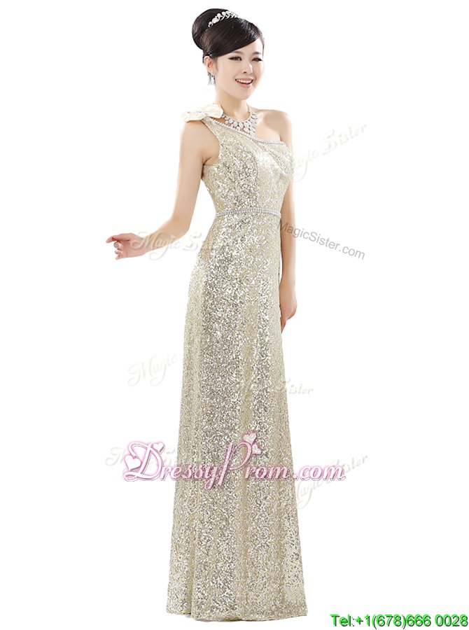 Neckline : One shoulderShown Color : ChampagneSilhouette : Column/SheathSleeve Length : sleevelessHemline : floor lengthBack Detail : ZipperFabric : SequinedEmbellishment : Beading,SequinsOccasion : Prom,PartySeason : Spring,Summer,Fall,Winter