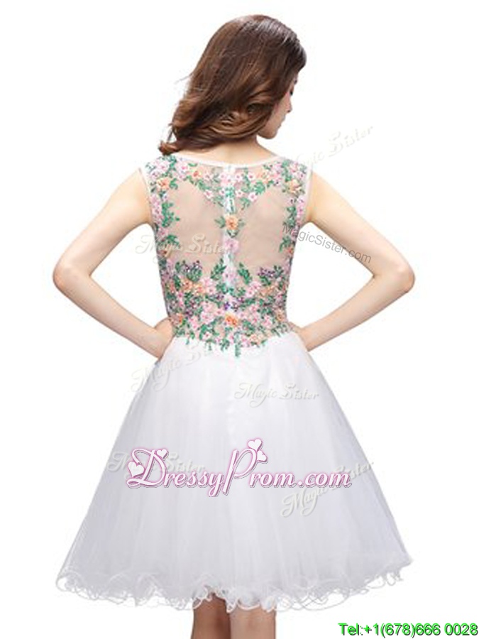 Neckline : ScoopShown Color : TurquoiseSilhouette : A-lineSleeve Length : sleevelessHemline : mini lengthBack Detail : ZipperFabric : OrganzaEmbellishment : EmbroideryOccasion : Prom,PartySeason : Spring,Summer,Fall
