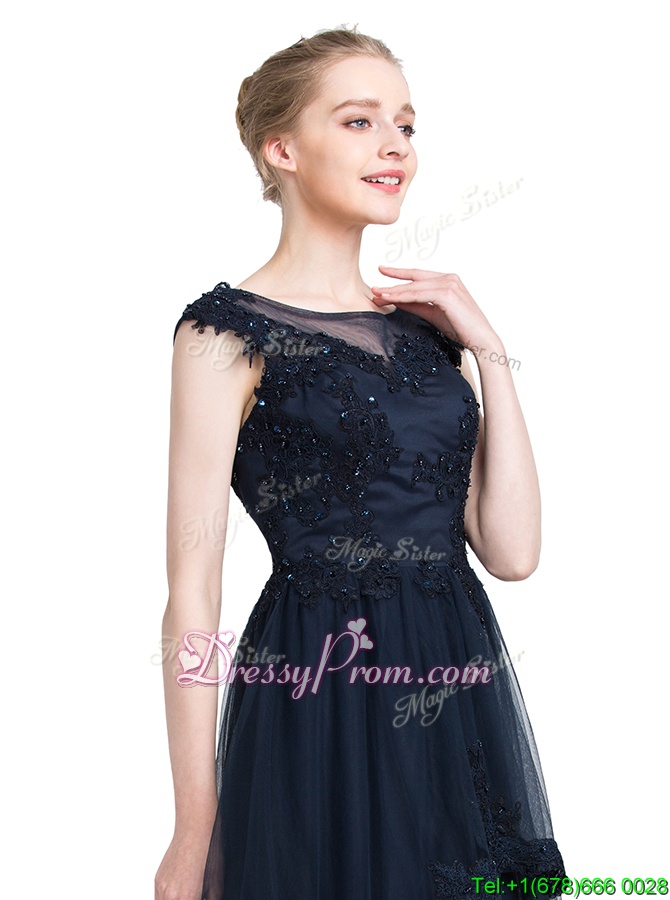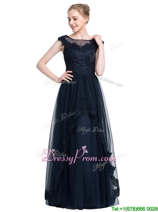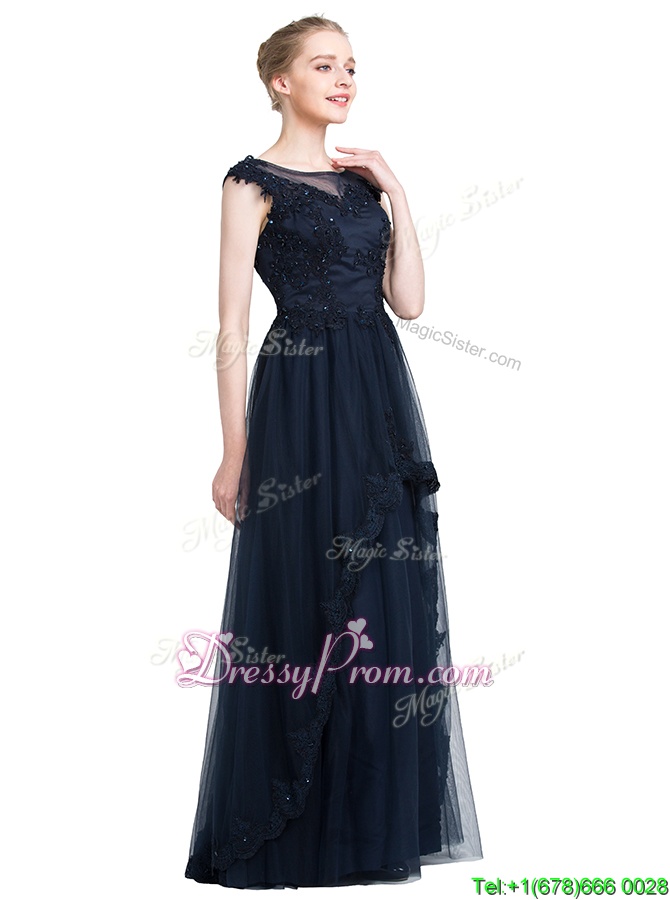 Neckline : BateauShown Color : BlackSilhouette : EmpireSleeve Length : sleevelessHemline : floor lengthBack Detail : ZipperFabric : TulleEmbellishment : BeadingOccasion : Prom,PartySeason : Spring,Summer,Fall,Winter