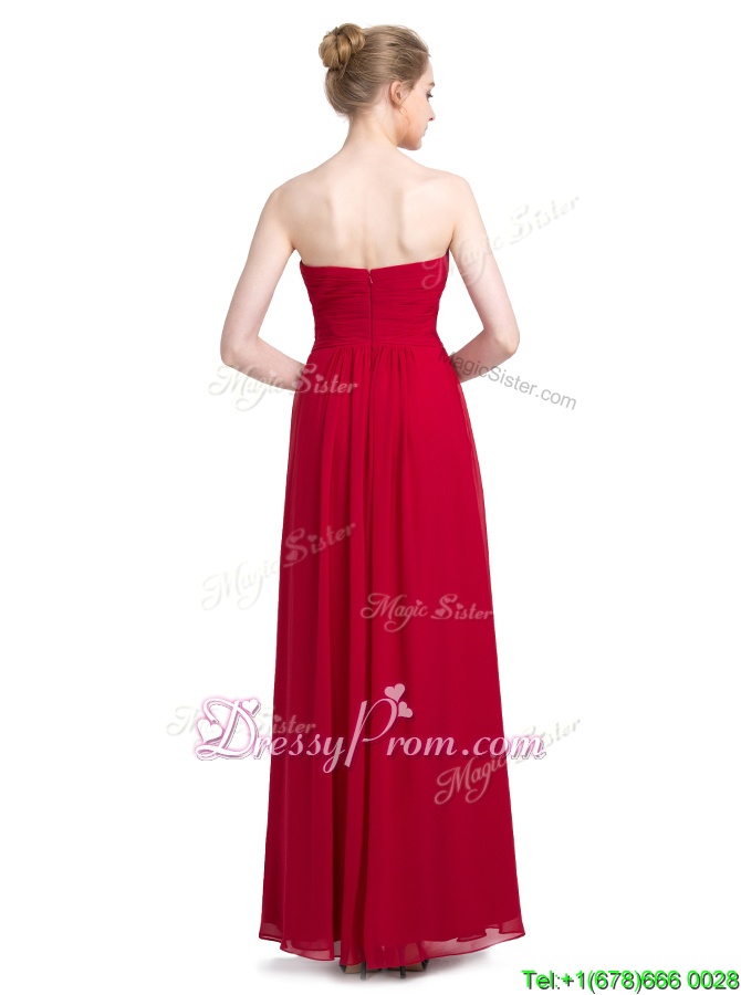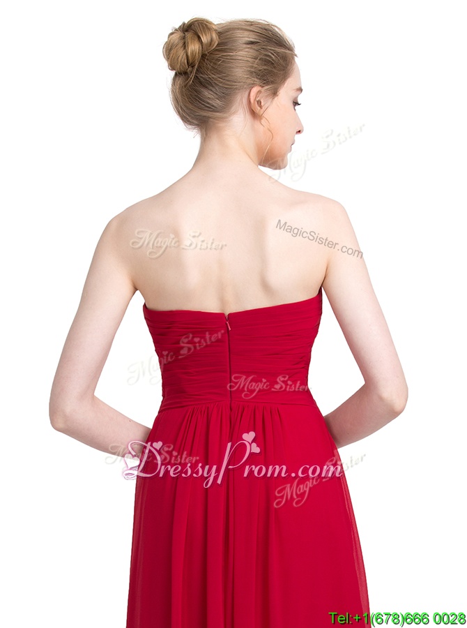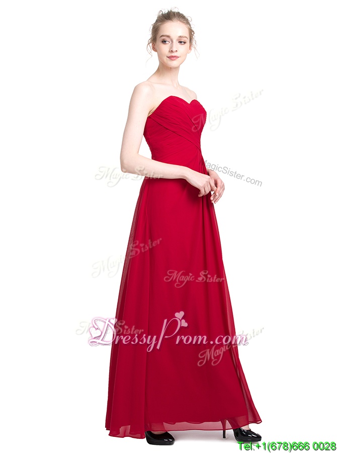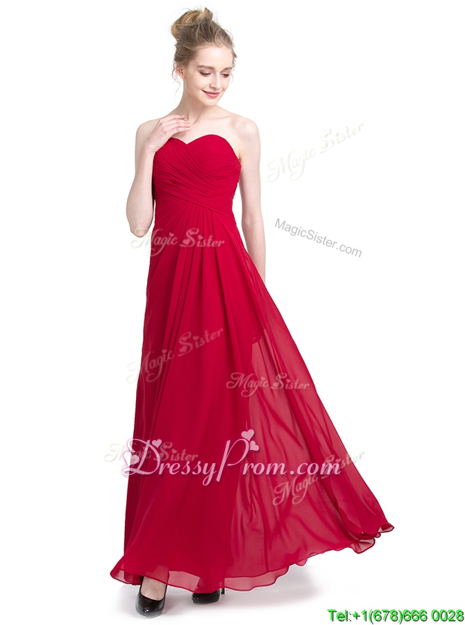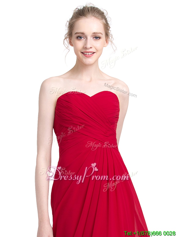 Neckline : SweetheartShown Color : RedSilhouette : Column/SheathSleeve Length : sleevelessHemline : floor lengthBack Detail : ZipperFabric : ChiffonEmbellishment : RuchingOccasion : Prom,PartySeason : Spring,Summer,Fall,Winter