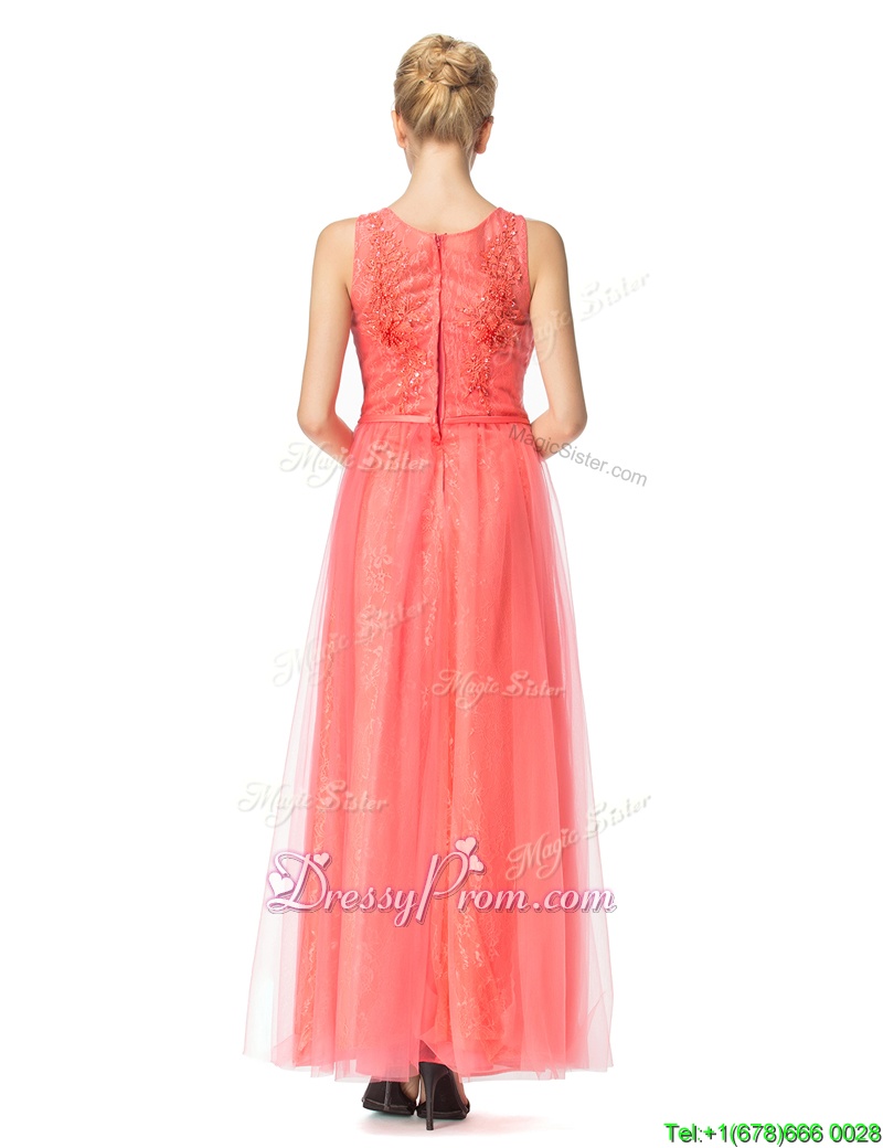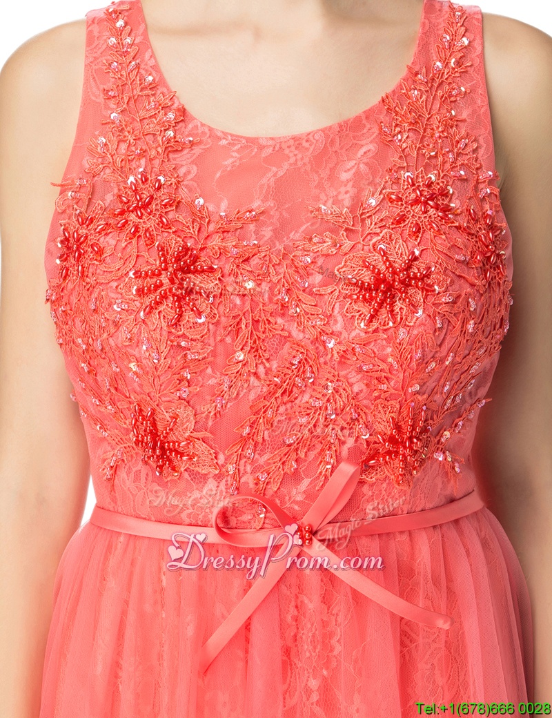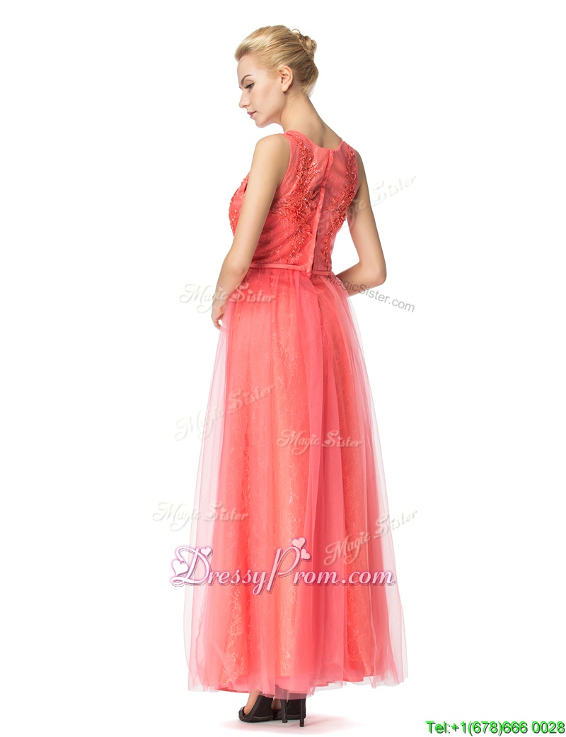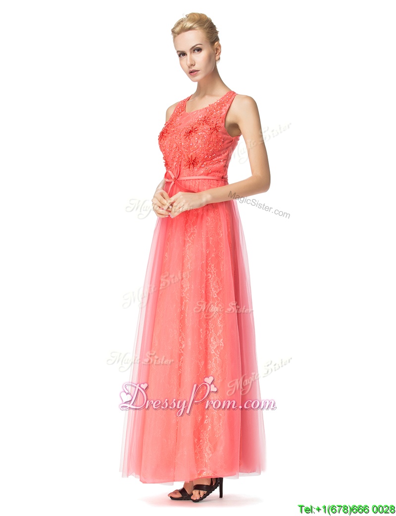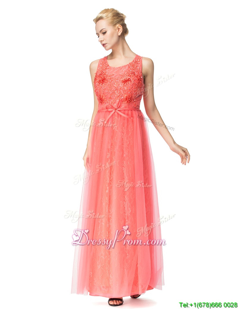 Neckline : ScoopShown Color : Watermelon RedSilhouette : EmpireSleeve Length : sleevelessHemline : floor lengthBack Detail : ZipperFabric : Organza,TulleEmbellishment : Beading,BowknotOccasion : Prom,PartySeason : Spring,Summer,Fall,Winter