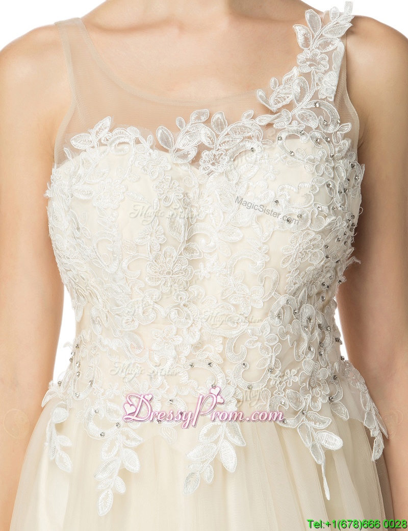 Neckline : ScoopShown Color : ChampagneSilhouette : A-lineSleeve Length : sleevelessHemline : knee lengthBack Detail : ZipperFabric : OrganzaEmbellishment : BeadingOccasion : Prom,PartySeason : Spring,Summer,Winter
