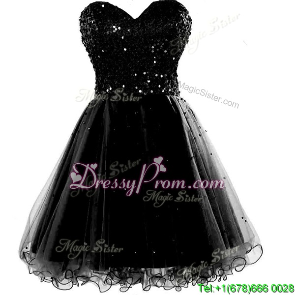 Neckline : SweetheartShown Color : BlackSilhouette : A-lineSleeve Length : sleevelessHemline : knee lengthBack Detail : Lace upFabric : ChiffonEmbellishment : Beading,RuchingOccasion : Prom,PartySeason : Spring,Summer,Fall