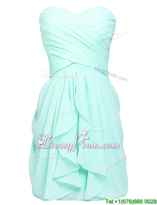 Neckline : SweetheartShown Color : Apple GreenSilhouette : Column/SheathSleeve Length : sleevelessHemline : knee lengthBack Detail : Lace upFabric : ChiffonEmbellishment : RuchingOccasion : Prom,PartySeason : Spring,Summer,Fall