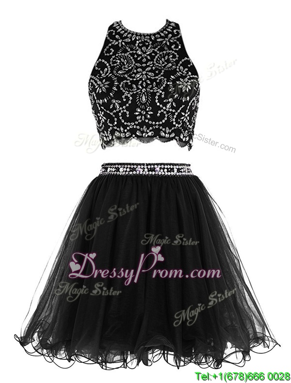Neckline : ScoopShown Color : BlackSilhouette : EmpireSleeve Length : sleevelessHemline : mini lengthBack Detail : Clasp handleFabric : ChiffonEmbellishment : BeadingOccasion : Prom,PartySeason : Spring,Summer,Fall