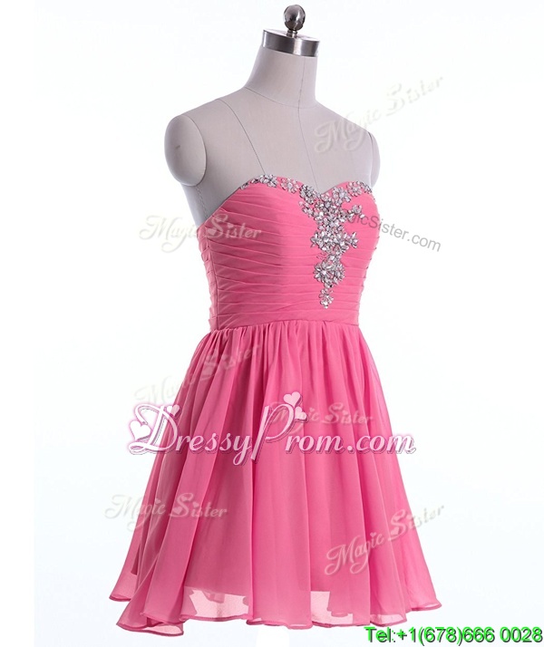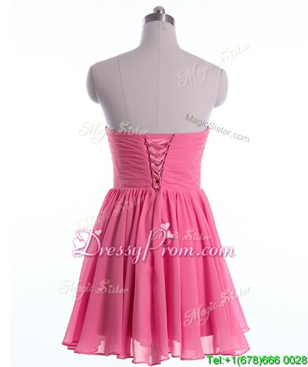 Neckline : SweetheartShown Color : Rose Pink Silhouette : A-lineSleeve Length : sleevelessHemline : mini lengthBack Detail : Lace upFabric : OrganzaEmbellishment : BeadingOccasion : Prom,PartySeason : Spring,Summer,Fall,Winter