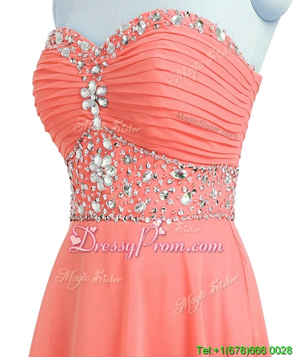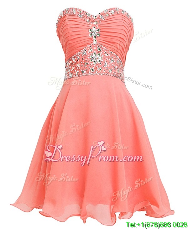 Neckline : SweetheartShown Color : Watermelon RedSilhouette : EmpireSleeve Length : sleevelessHemline : mini lengthBack Detail : Lace upFabric : OrganzaEmbellishment : Beading,BeltOccasion : Prom,PartySeason : Spring,Summer,Fall