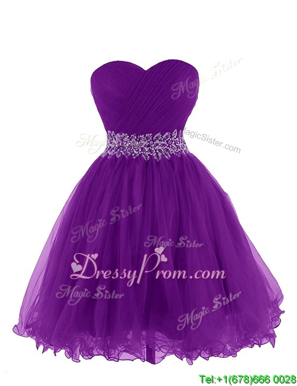 Neckline : SweetheartShown Color : PurpleSilhouette : EmpireSleeve Length : sleevelessHemline : mini lengthBack Detail : Lace upFabric : OrganzaEmbellishment : BeltOccasion : Prom,PartySeason : Spring,Summer,Fall