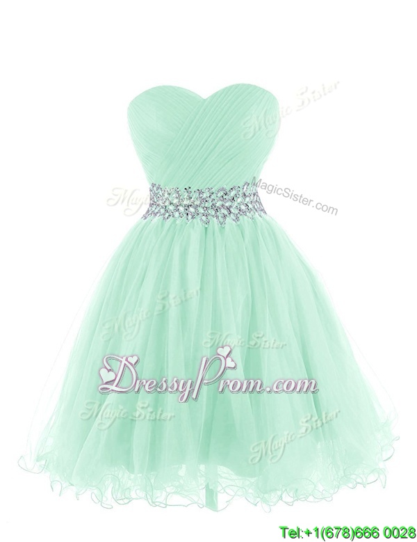 Neckline : Sweetheart Shown Color : Apple Green Silhouette : Empire Sleeve Length : sleeveless Hemline : mini length Back Detail : Lace up Fabric : Organza Embellishment : Belt Occasion : Prom,Party Season : Spring,Summer,Fall