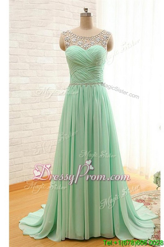Neckline : SweetheartShown Color : ChampagneSilhouette : MermaidSleeve Length : sleevelessHemline : with trainBack Detail : ZipperFabric : ChiffonEmbellishment : BeadingOccasion : Prom,PartySeason : Spring,Summer,Fall,Winter