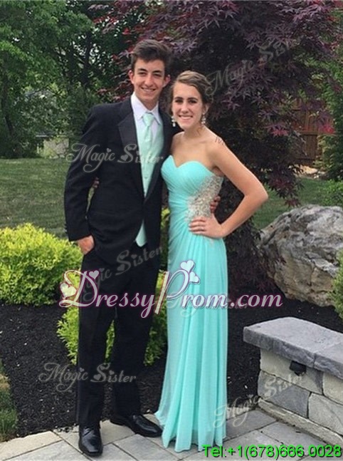 Neckline : SweetheartShown Color : Aqua BlueSilhouette : A-lineSleeve Length : sleevelessHemline : floor lengthBack Detail : ZipperFabric : ChiffonEmbellishment : BeadingOccasion : Prom,PartySeason : Spring,Summer,Fall