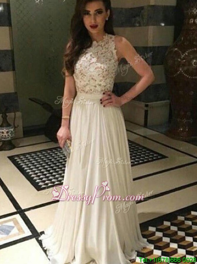 Neckline : ScoopShown Color : WhiteSilhouette : A-lineSleeve Length : sleevelessHemline : floor lengthBack Detail : ZipperFabric : LaceEmbellishment : LaceOccasion : Prom,PartySeason : Spring,Summer,Fall