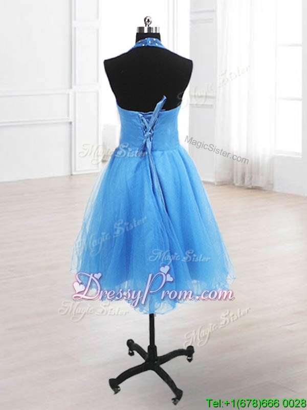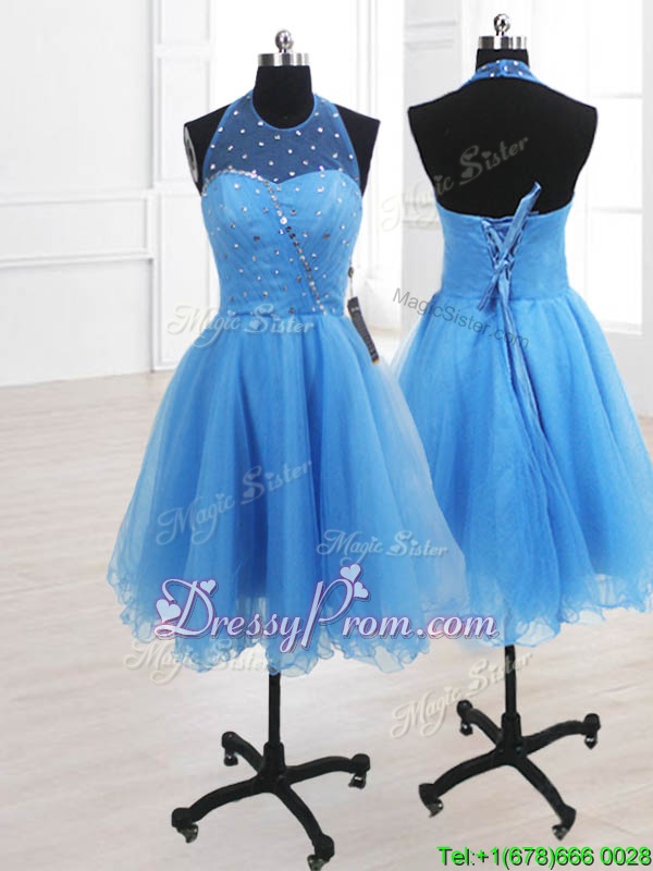 Neckline : High-neckShown Color : Yellow GreenSilhouette : A-lineSleeve Length : sleevelessHemline : knee lengthBack Detail : Lace upFabric : OrganzaEmbellishment : SequinsOccasion : Prom,PartySeason : Spring,Summer,Fall