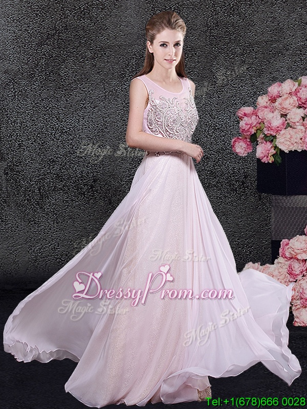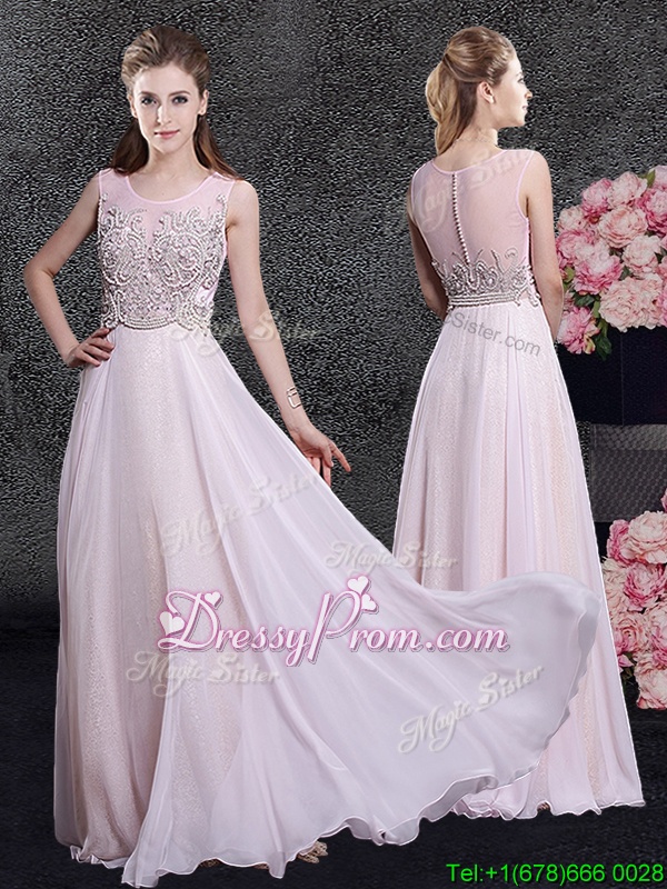Neckline : ScoopShown Color : PinkSilhouette : EmpireSleeve Length : sleevelessHemline : floor lengthBack Detail : ZipperFabric : ChiffonEmbellishment : BeadingOccasion : Prom,Party,Military Ball,Wedding PartySeason : Spring,Summer,Fall,Winter