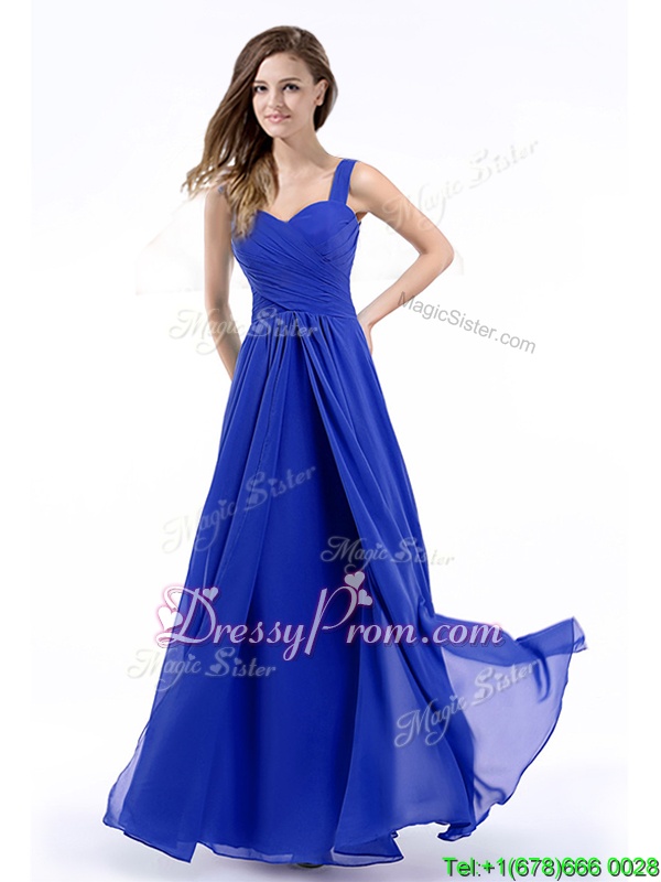 Neckline : StrapsShown Color : Royal BlueSilhouette : EmpireSleeve Length : sleevelessHemline : floor lengthBack Detail : ZipperFabric : ChiffonEmbellishment : Hand Made FlowerOccasion : PromSeason : Spring,Summer,Fall,Winter