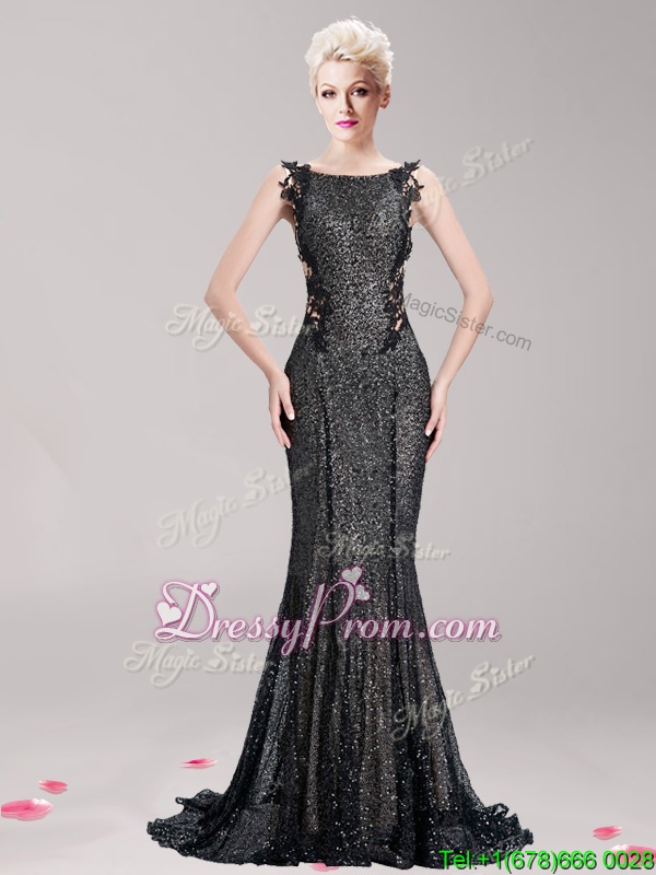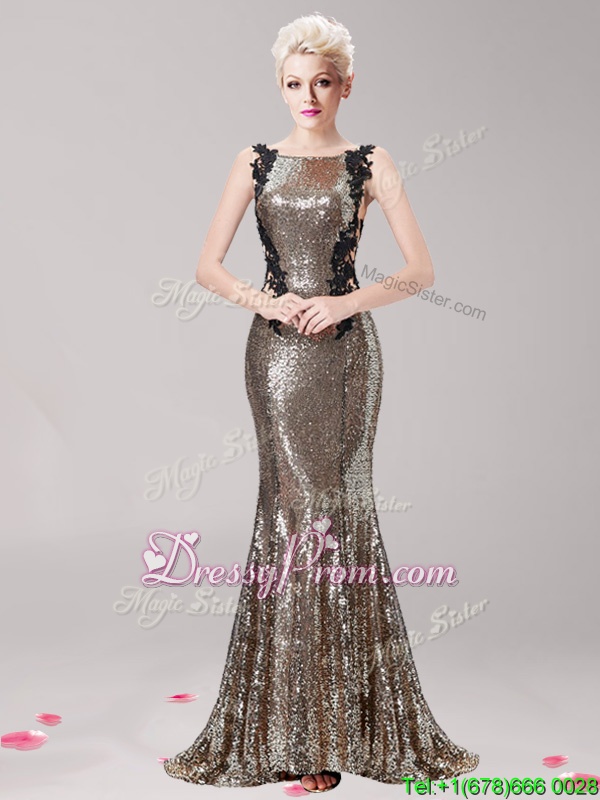 Neckline : SquareShown Color : BrownSilhouette : MermaidSleeve Length : sleevelessHemline : with trainBack Detail : Clasp handleFabric : SequinedEmbellishment : Appliques,SequinsOccasion : PromSeason : Spring,Summer,Fall,Winter