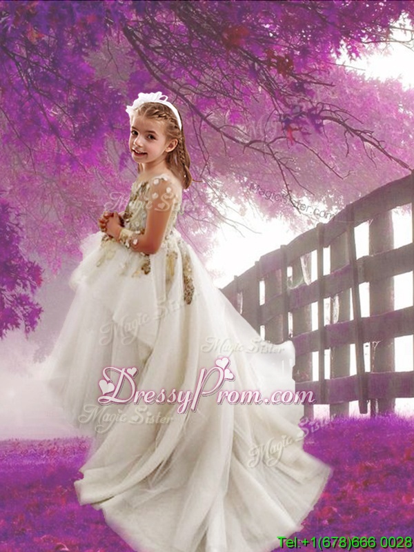 Neckline : V-neckShown Color : WhiteSilhouette : A-lineSleeve Length : sleevelessBack Detail : ZipperFabric : TulleEmbellishment : AppliquesOccasion : Prom,PartySeason : Spring,Summer,Fall,Winter