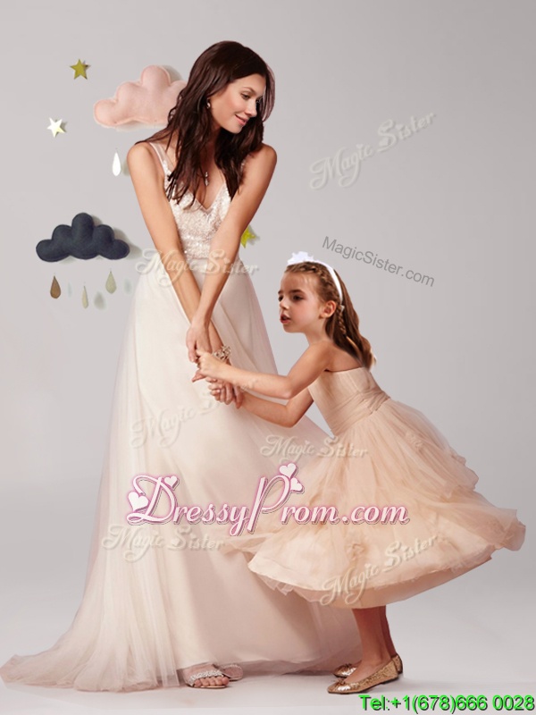 Neckline : StrapsShown Color : ChampagneSilhouette : EmpireSleeve Length : sleevelessHemline : floor lengthBack Detail : ZipperFabric : TulleEmbellishment : BeadingOccasion : Prom,PartySeason : Spring,Summer,Fall,Winter