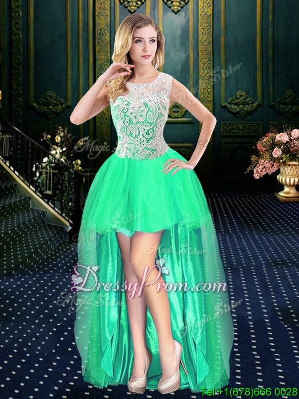 Neckline : ScoopShown Color : TurquoiseSilhouette : A-lineSleeve Length : sleevelessHemline : high lowBack Detail : Clasp handleFabric : OrganzaEmbellishment : BeadingOccasion : Prom,Party,Military Ball,Wedding PartySeason : Spring,Summer,Fall,Winter