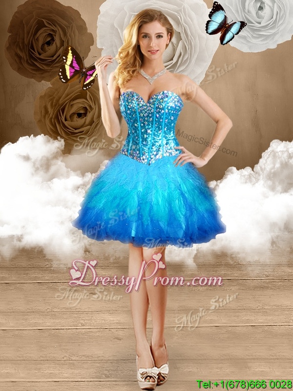 Neckline : SweetheartShown Color : Multi-colorSilhouette : Ball GownsSleeve Length : sleevelessHemline : mini lengthBack Detail : Lace upFabric : TulleEmbellishment : BeadingOccasion : Prom,PartySeason : Spring,Summer,Fall