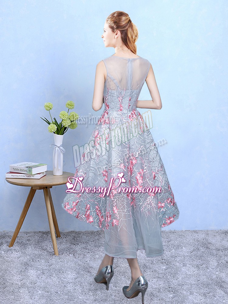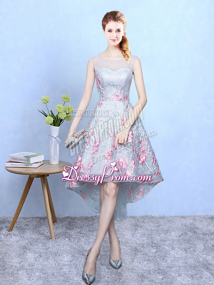 Neckline : SquareShown Color : Multi-colorSilhouette : A-lineSleeve Length : sleevelessHemline : high lowBack Detail : ZipperFabric : OrganzaEmbellishment : EmbroideryOccasion : Prom,PartySeason : Spring,Summer,Fall
