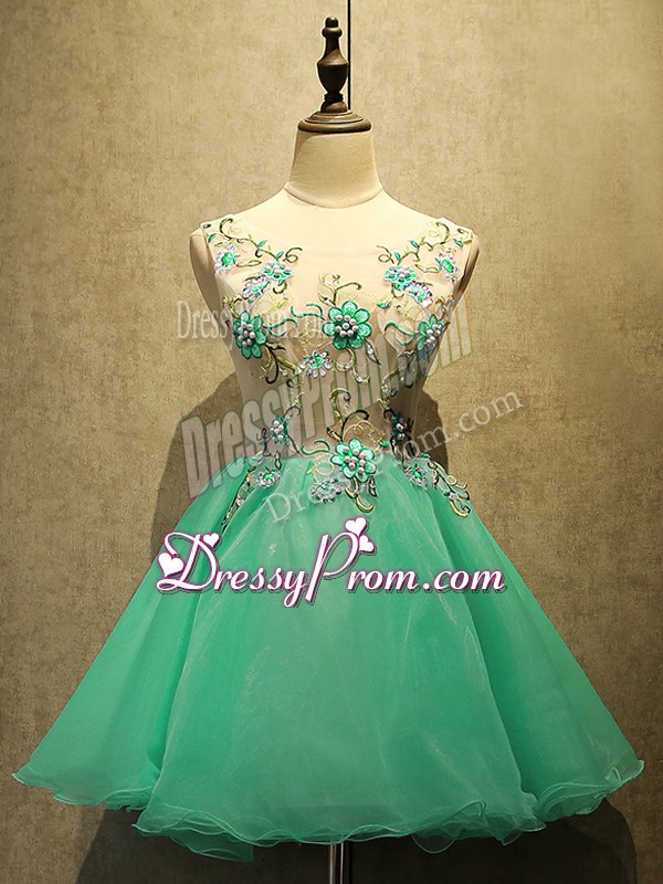 Best Organza Sleeveless Mini Length Evening Dress and Embroidery