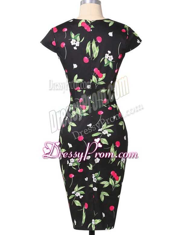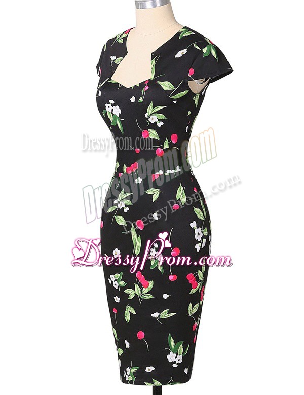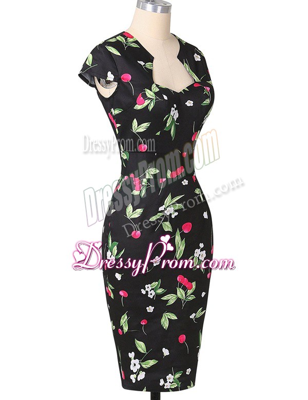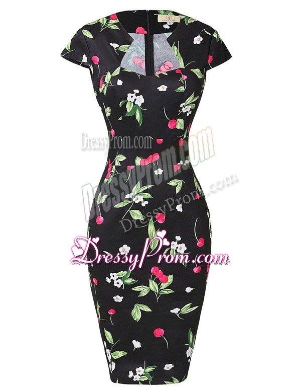 Neckline : StraplessShown Color : Multi-colorSilhouette : Column/SheathSleeve Length : cap sleevesHemline : knee lengthBack Detail : ZipperFabric : PrintedEmbellishment : PatternOccasion : Prom,PartySeason : Spring,Summer,Fall