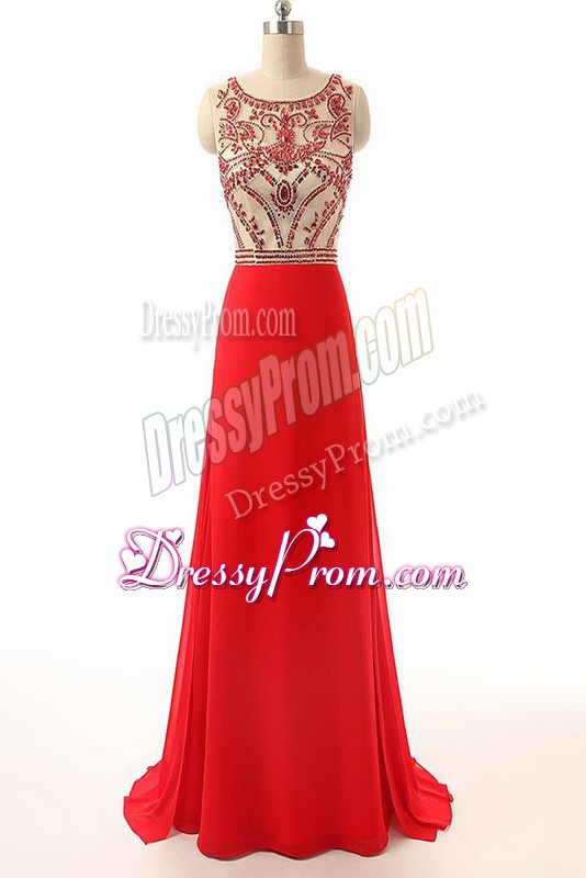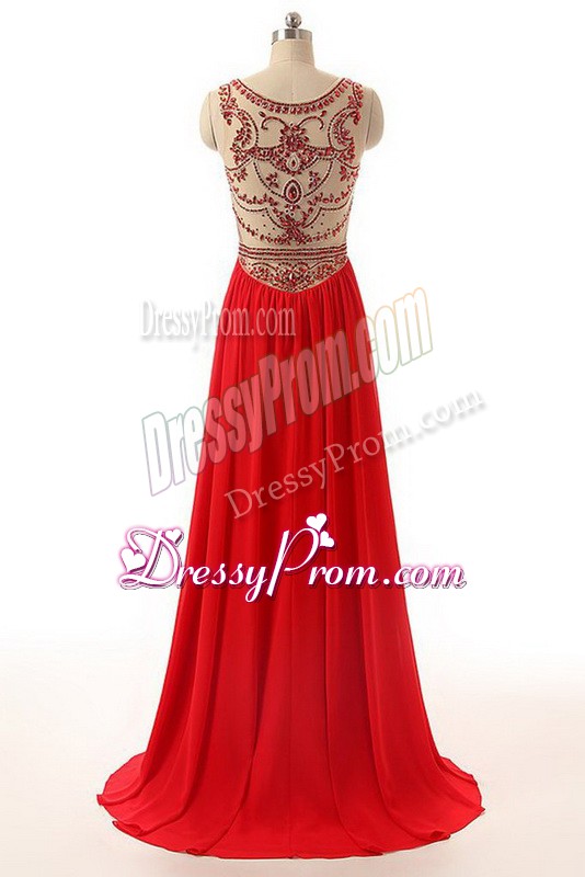 Neckline : ScoopShown Color : RedSilhouette : EmpireSleeve Length : sleevelessBack Detail : Side zipperFabric : ChiffonEmbellishment : BeadingOccasion : Prom,PartySeason : Spring,Summer,Fall,Winter