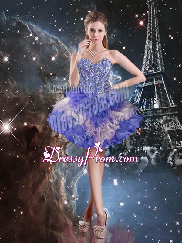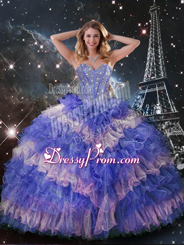 Neckline : SweetheartShown Color : Multi-colorSilhouette : MermaidSleeve Length : sleevelessHemline : floor lengthBack Detail : Lace upFabric : OrganzaEmbellishment : Beading,Ruffled LayersOccasion : Military Ball,Sweet 16,QuinceaneraSeason : Spring,Summer,Fall,Winter