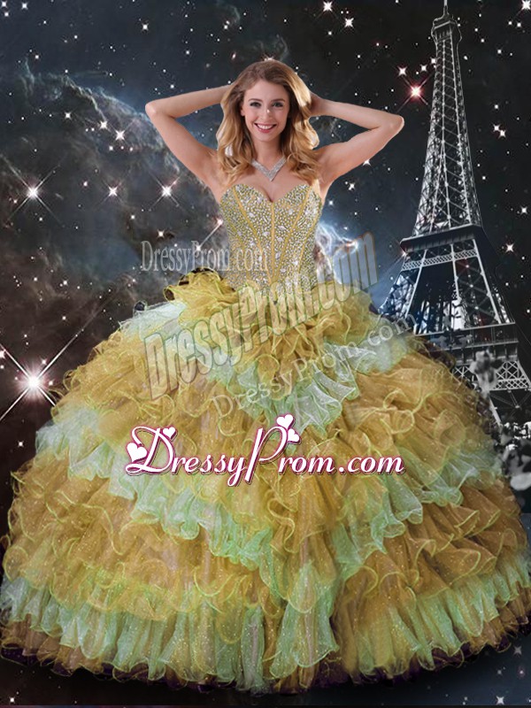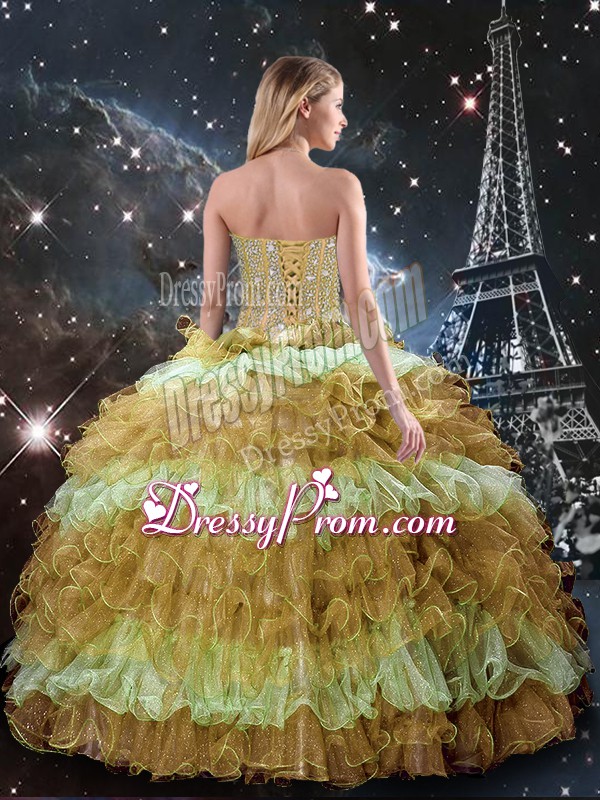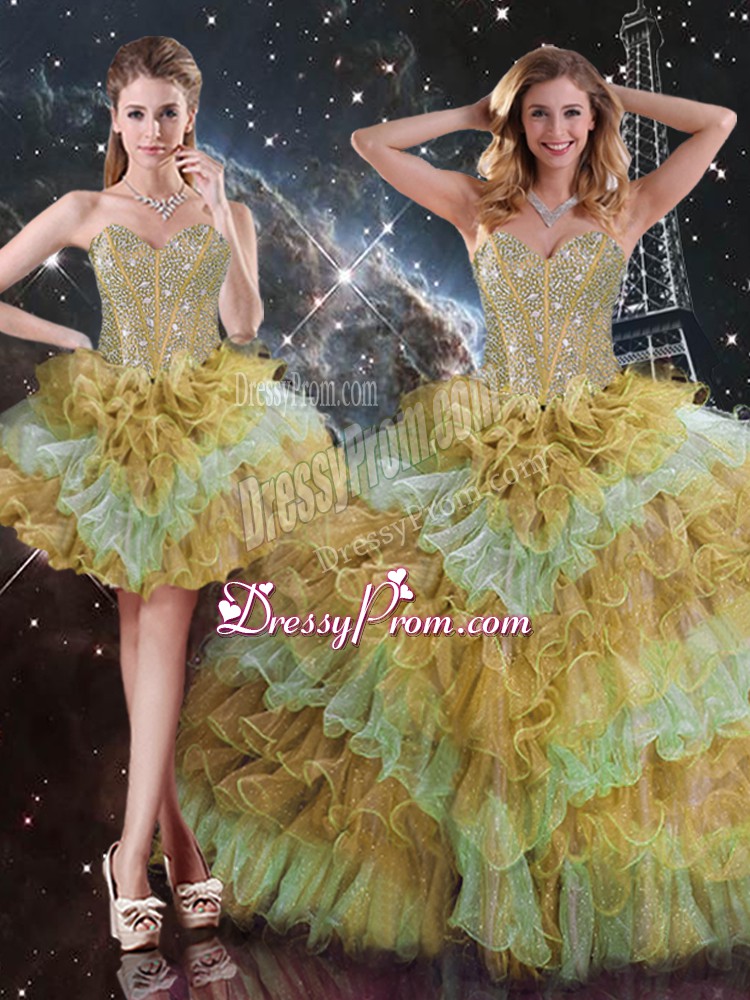 Low Price Multi-color Three Pieces Sweetheart Sleeveless Organza Floor Length Lace Up Beading and Ruffled Layers 15 Quinceanera Dress
