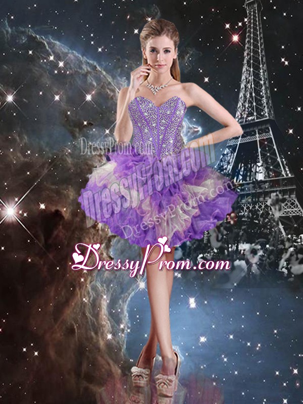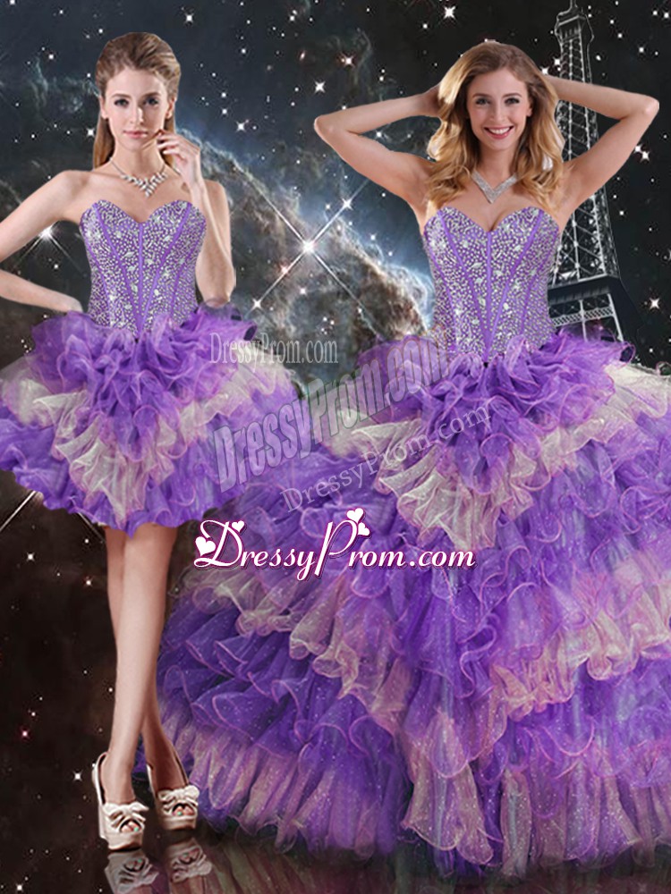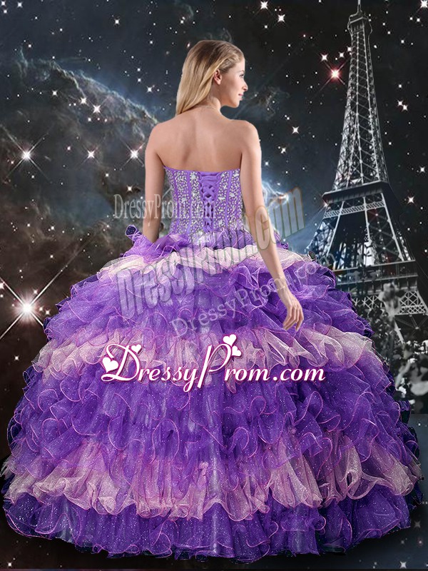 Romantic Multi-color Lace Up Sweetheart Beading and Ruffled Layers Ball Gown Prom Dress Organza Sleeveless