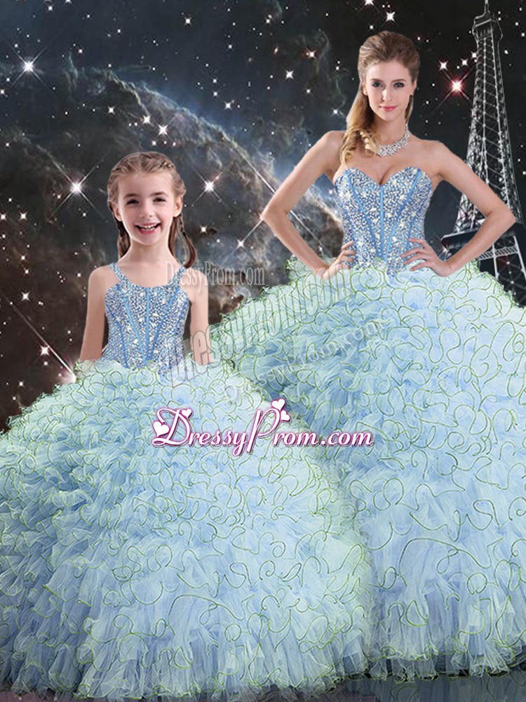 Neckline : SweetheartShown Color : Aqua BlueSilhouette : Ball GownsSleeve Length : sleevelessHemline : floor lengthBack Detail : Lace upFabric : OrganzaEmbellishment : Beading,RufflesOccasion : Military Ball,Sweet 16,QuinceaneraSeason : Spring,Summer,Fall,Winter