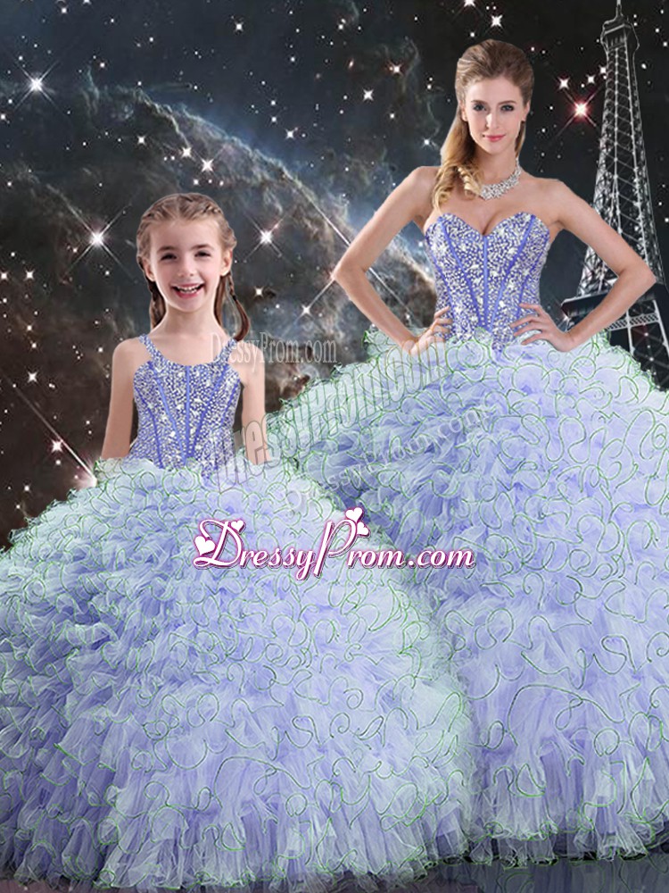 Neckline : SweetheartShown Color : LavenderSilhouette : Ball GownsSleeve Length : sleevelessHemline : floor lengthBack Detail : Lace upFabric : OrganzaEmbellishment : Beading,RufflesOccasion : Military Ball,Sweet 16,QuinceaneraSeason : Spring,Summer,Fall,Winter