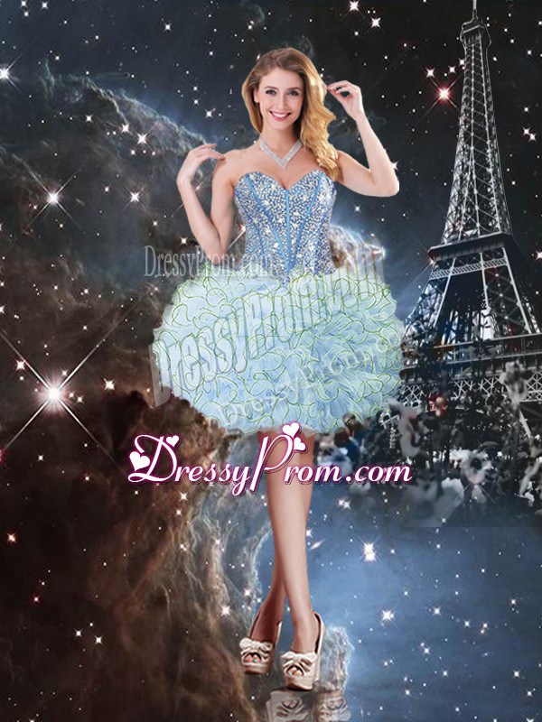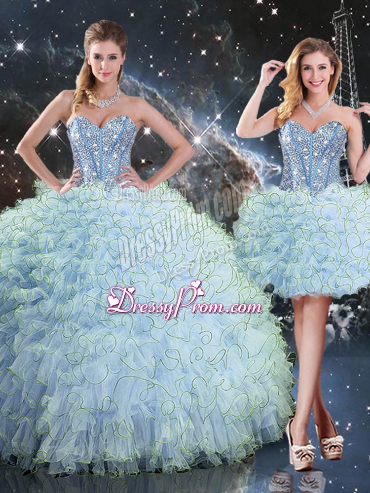 Neckline : SweetheartShown Color : Aqua BlueSilhouette : Ball GownsSleeve Length : sleevelessHemline : floor lengthBack Detail : Lace upFabric : OrganzaEmbellishment : Beading,RufflesOccasion : Military Ball,Sweet 16,QuinceaneraSeason : Spring,Summer,Fall,Winter