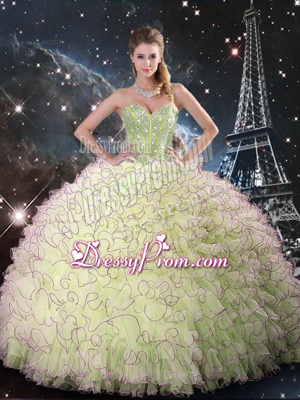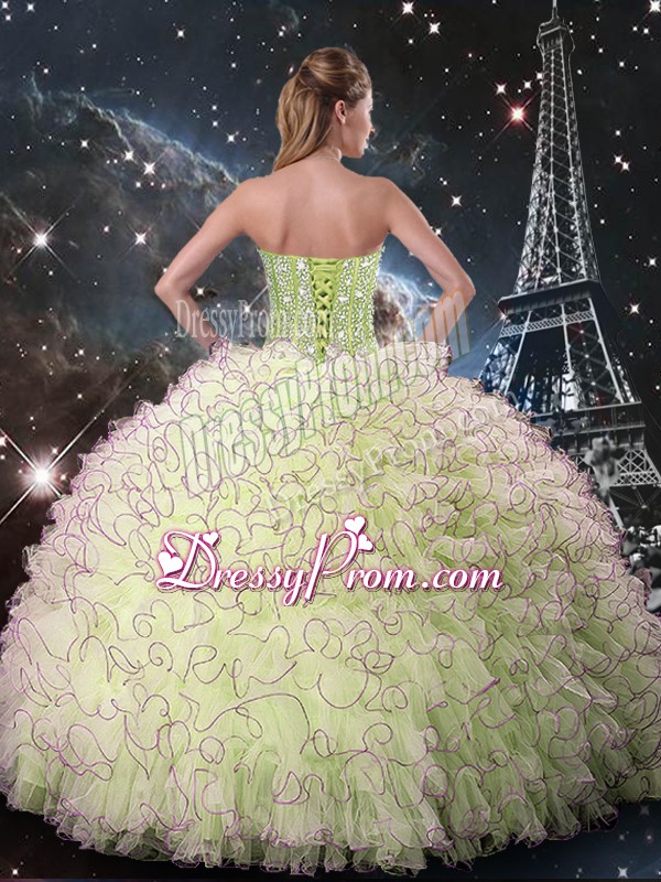 Neckline : SweetheartShown Color : Yellow GreenSilhouette : Ball GownsSleeve Length : sleevelessHemline : floor lengthBack Detail : Lace upFabric : OrganzaEmbellishment : Beading,RufflesOccasion : Military Ball,Sweet 16,QuinceaneraSeason : Spring,Summer,Fall,Winter