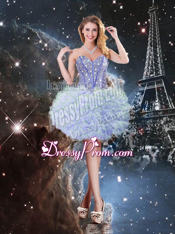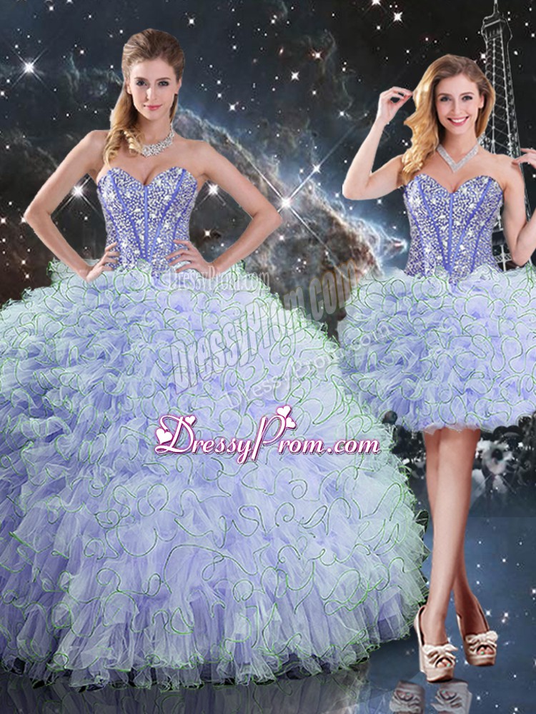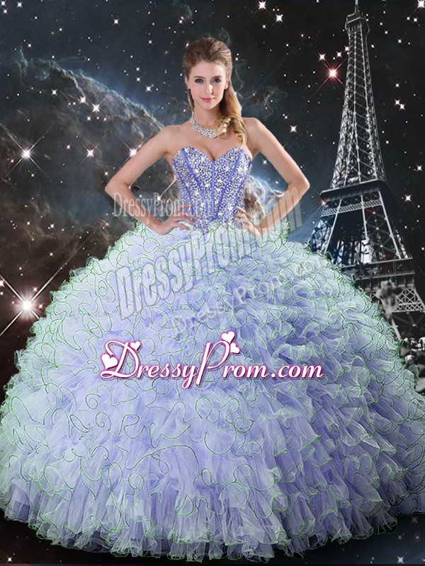 Colorful Organza Sweetheart Sleeveless Lace Up Beading and Ruffles Quinceanera Dress in Lavender