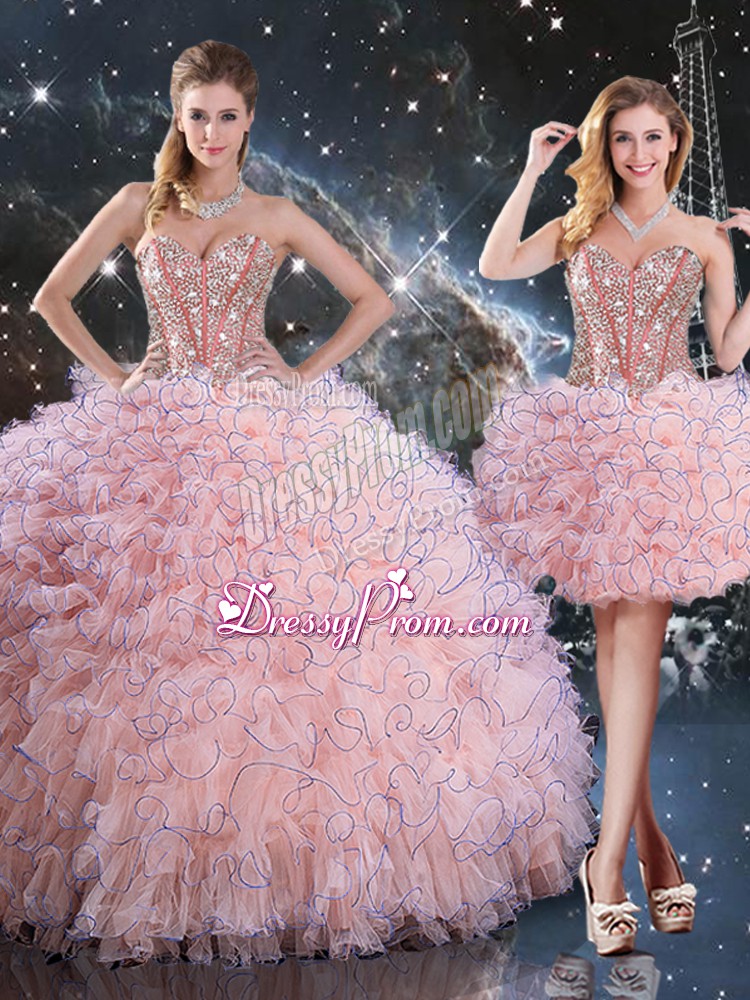 Delicate Sleeveless Beading and Ruffles Lace Up 15 Quinceanera Dress