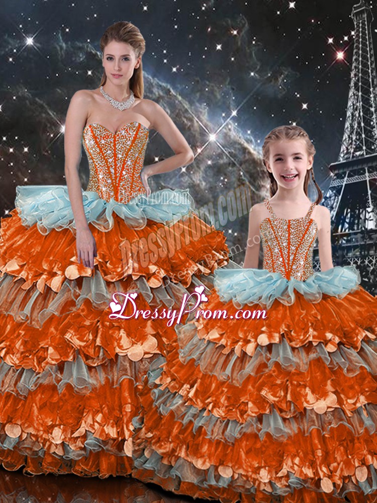 Artistic Beading and Ruffles 15 Quinceanera Dress Multi-color Lace Up Sleeveless Floor Length